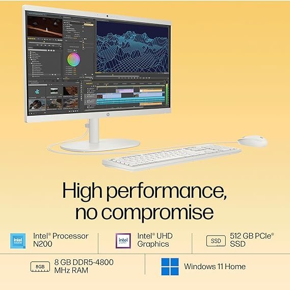 | Additional Details | Operating System Windows 11 Home Specific Uses For Product Multimedia Personal Computer Design Type All in One Colour White Hard Disk Description SSD Hardware Interface HDMI, USB, USB Type C Item Dimensions 16 x 39.6 x 59.8 Centimeters Item Weight 7480 Grams Video Output HDMI Video Output Interface HDMI Hard Drive Interface PCIE x 2 Style Name 8 GB DDR5, 512GB SSD, Power Plug Type Type D Graphics Graphics Description Integrated Graphics Co Processor Integrated Graphics Graphics Ram Type SODIMM Graphics Card Interface Integrated Processor Processor Type Pentium Processor Speed 3.7 GHz Processor Count 4 Screen Size 21.45 Inches Maximum Display Resolution 1920 x 1080 Display Type LED LCD Aspect Ratio 16:9 Scanner Resolution 1280 x 720, 1920 x 1080, 3840 x 2160 Native Resolution 1920 x 1080 Ports Total USB Ports 5 Total HDMI Port 1 Total Video Out Ports 1 Input Devices Human Interface Types Keyboard Keyboard Description Standard Keyboard Keyboard Layout QWERTY |